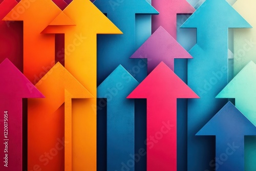 Colorful Abstract Design with 3D Arrows for Business Marketing Strategy and Economic Growth Background