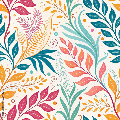 "Colorful Abstract Floral Pattern with Gradient Leaves"