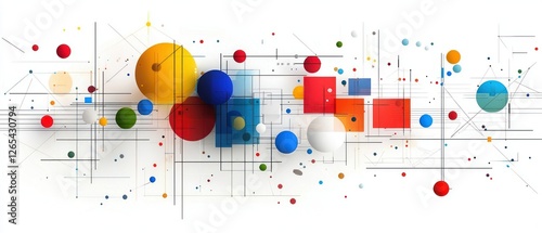 Colorful Abstract Geometric Art with Circles and Squares on White Background
