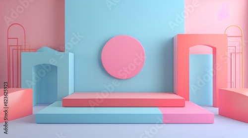 Colorful abstract geometric background with blue and pink shapes. Modern minimalist 3D rendering for presentations and creative projects.