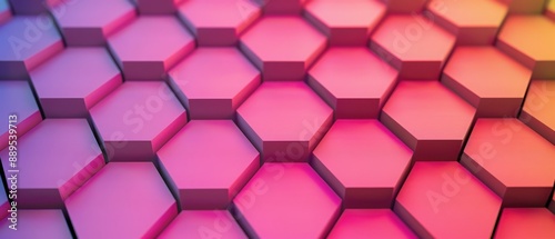 Colorful abstract hexagonal pattern featuring a gradient of pink, red, and orange hues, creating a vibrant and modern geometric background.