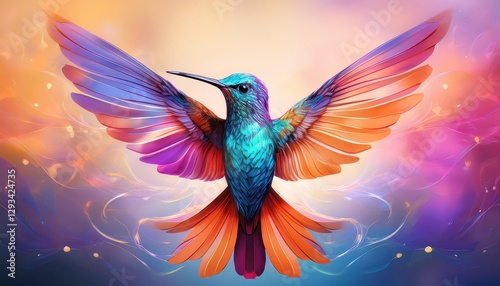 Colorful Abstract Hummingbird Design GradientInfused Avian Masterpiece Evoking Vibrancy and Energy in an Ethereal Universe