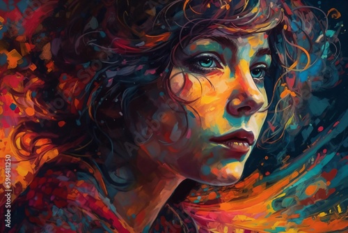colorful abstract illustration of woman face, she has blue eyes created with Generative AI technology