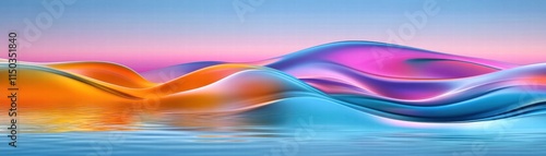 Colorful abstract landscape with waves and gradient skies, peaceful and serene.
