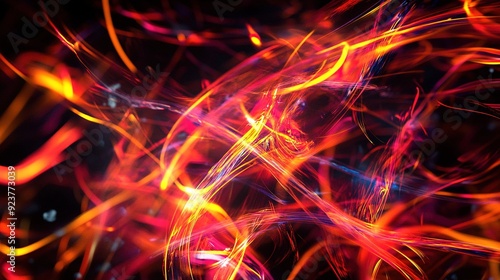Colorful abstract light trails swirling on a dark background at night
