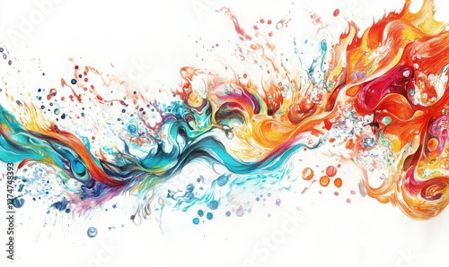 Colorful abstract paint splash with dynamic motion on white.