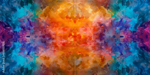 Colorful abstract painting with vibrant colors and a mirror image pattern