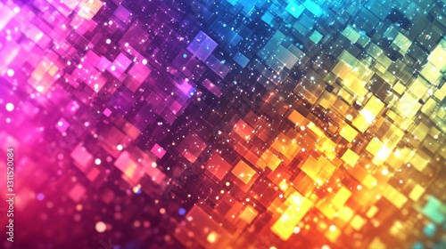 Colorful abstract pattern with vibrant squares and sparkling lights creates a lively visual experience