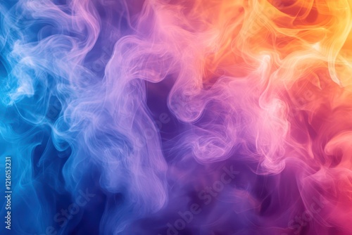 Colorful, abstract smoke patterns with overlaying text, creating a vibrant and energetic