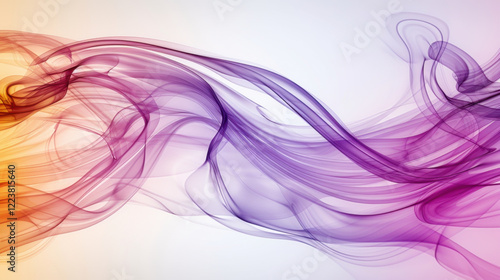 Colorful abstract smoke waves in purple and orange tones create dynamic and fluid background, evoking sense of movement and creativity