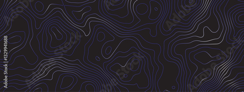 "Colorful Abstract Topographic Map with Seamless Lines and Geometric Grids, Depicting the Terrain of Sea and Mountains on a Deep Black Background"