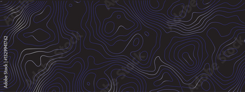 "Colorful Abstract Topographic Map with Seamless Lines and Geometric Grids, Depicting the Terrain of Sea and Mountains on a Deep Black Background"