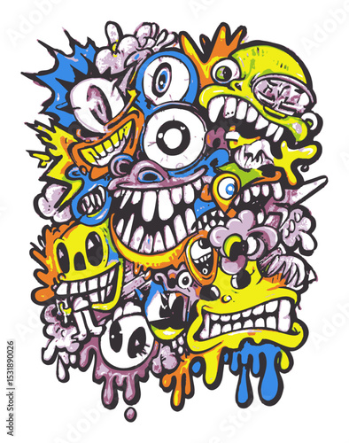 Colorful Abstract Vector Art of Playful Cartoon Faces and Expressions