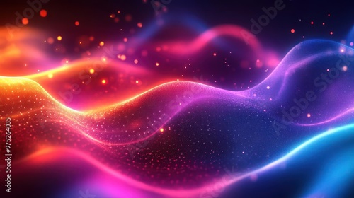 Colorful abstract visual with wavy lines and sparkling dots, evoking a sense of motion and energy.
