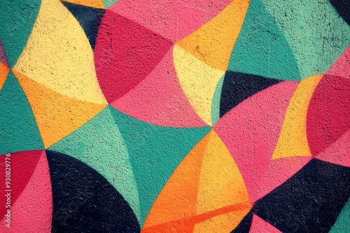 Colorful abstract wall mural with overlapping organic shapes capturing the vibrant energy creativity and dynamic flow of urban street art