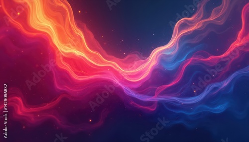 Colorful abstract waves of light and particles flowing across a dark background, digital art concept