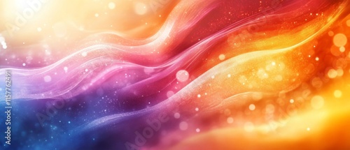 Colorful abstract waves shimmer under a radiant, glowing sunlight., Generative AI