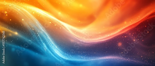 Colorful abstract waves shimmer under a radiant, glowing sunlight., Generative AI