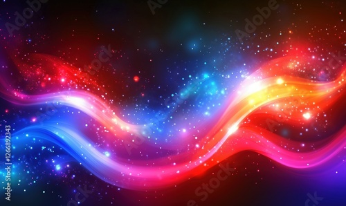 Colorful abstract waves with glowing stars and cosmic background