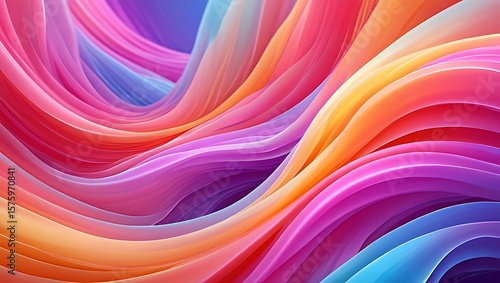 Colorful Abstract Waves with Smooth Gradients, Pastel Rainbow Ribbon Curves Intertwined Seamlessly