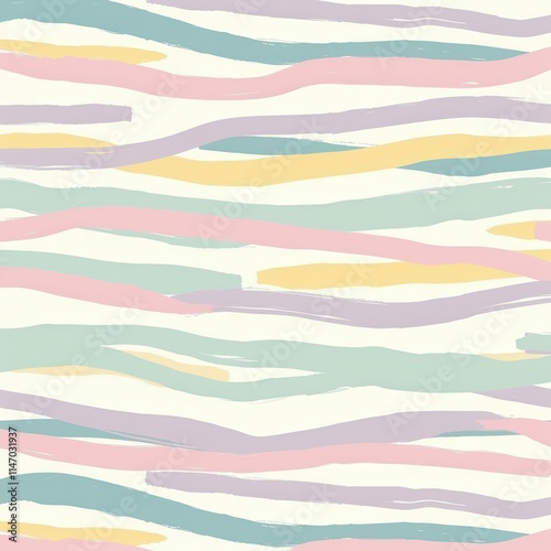 Colorful abstract wavy lines create a playful pattern on a light background with pastel tones. Generative AI