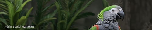 Colorful African grey parrot with bright green feathers, African grey, colorful
