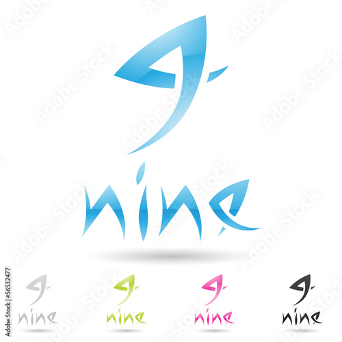 colorful and abstract icons for number 9, set 3