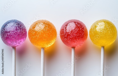 Colorful and Bright Lollipops on Sticks with Sparkling Sugar Coating for Sweet Treat Lovers and Candy Enthusiasts