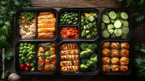 Colorful and Healthy Lunch Box Composition with Fresh Ingredients on Wooden Table Background for Meal Prep Inspiration