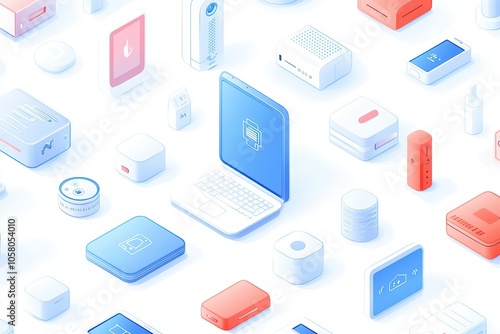 Colorful and modern digital devices on a white background for technology and innovation themes.