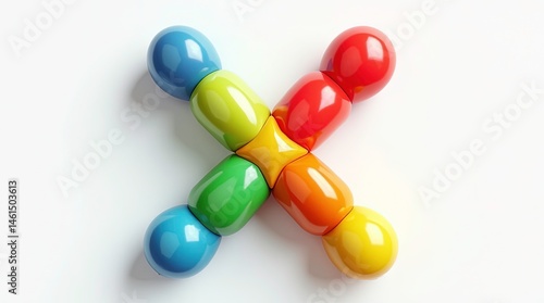 Colorful arrangement of plastic figures forming an 'X' shape on a white background, 3D render