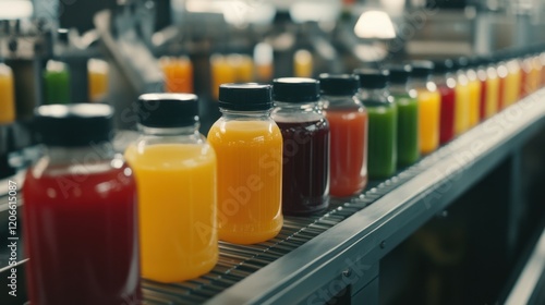 Colorful array of bottled juices on a production line in a modern factory setting (1)