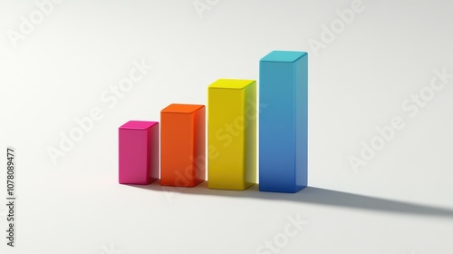 Colorful ascending bar graph representing growth and progress in business, finance, or performance metrics against a clean, minimalist background.