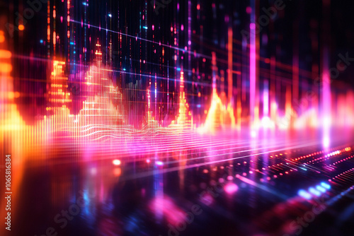 Colorful audio waveform representation with vibrant light effects