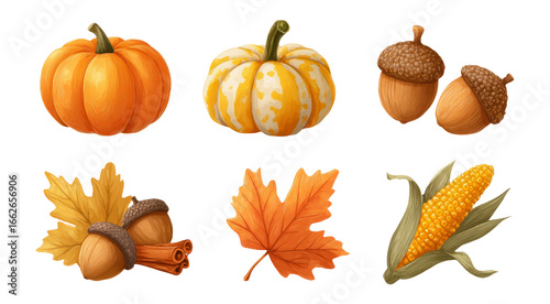 Colorful Autumn Decorations with Pumpkins, Acorns, and Leaves