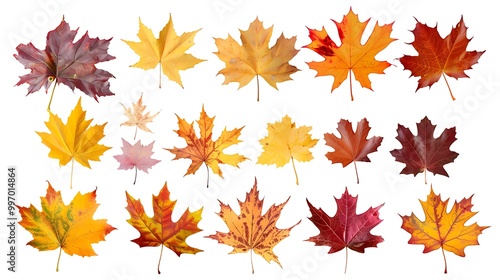 Colorful Autumn falling leaves isolated on transparent background. Ai Generative