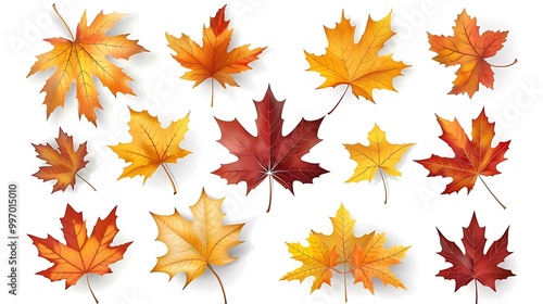 Colorful Autumn falling leaves isolated on transparent background. Ai Generative