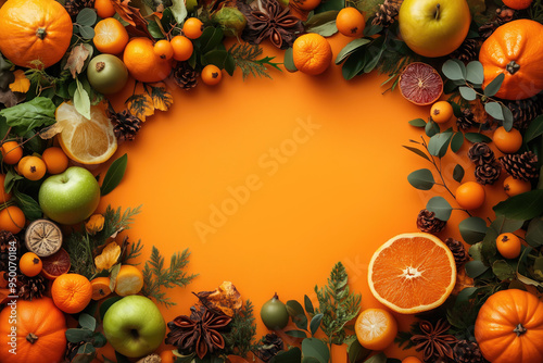 Colorful Autumn Fruits and Vegetables Frame Border Background - Space for Text