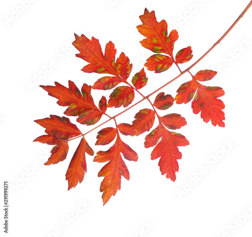 Colorful autumn leaf of Goldenrain Tree isolated on white background.