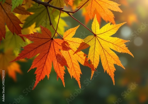 Colorful autumn leaves contrasting with sunlight in a serene outdoor setting
