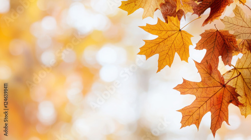 Colorful autumn leaves create soft focus background, evoking warmth and tranquility. Perfect for seasonal themes and nature inspired designs