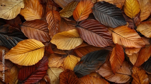 Colorful Autumn Leaves Creating a Natural Carpet in a Beautiful Fall Forest Setting : Generative AI
