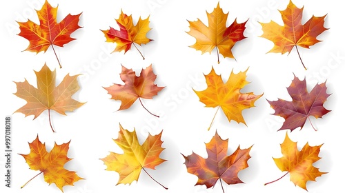 Colorful autumn leaves set isolated on white background ai generative