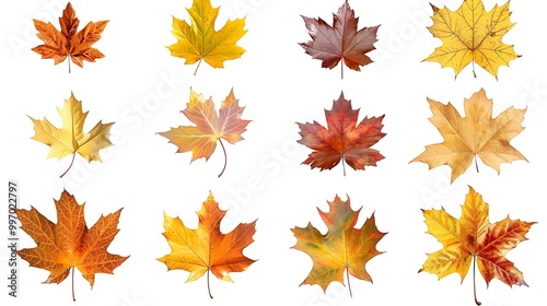 Colorful autumn leaves set isolated on white background Al Content
