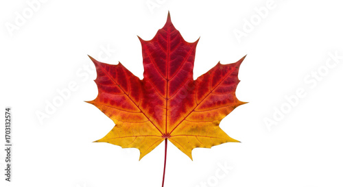 Colorful autumn maple leaf with red and yellow gradient isolated PNG with Transparent Background