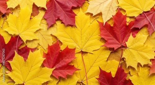 Colorful Autumn Maple Leaves in Red and Yellow on White Background