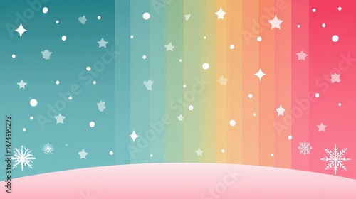 Colorful Background with Abstract Stars, Snowflakes, and Gradient Stripes for Creative Projects