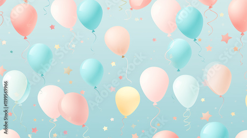Colorful balloons float against a pastel background, creating a festive and cheerful atmosphere for celebrations and events