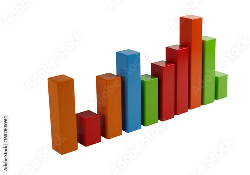 Colorful bar chart representing growth and data analysis isolated on transparent background