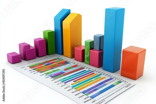 Colorful bar graph over a financial report symbolizing business analysis growth and financial success ideal for corporate reports economic analysis and presentations in a modern context